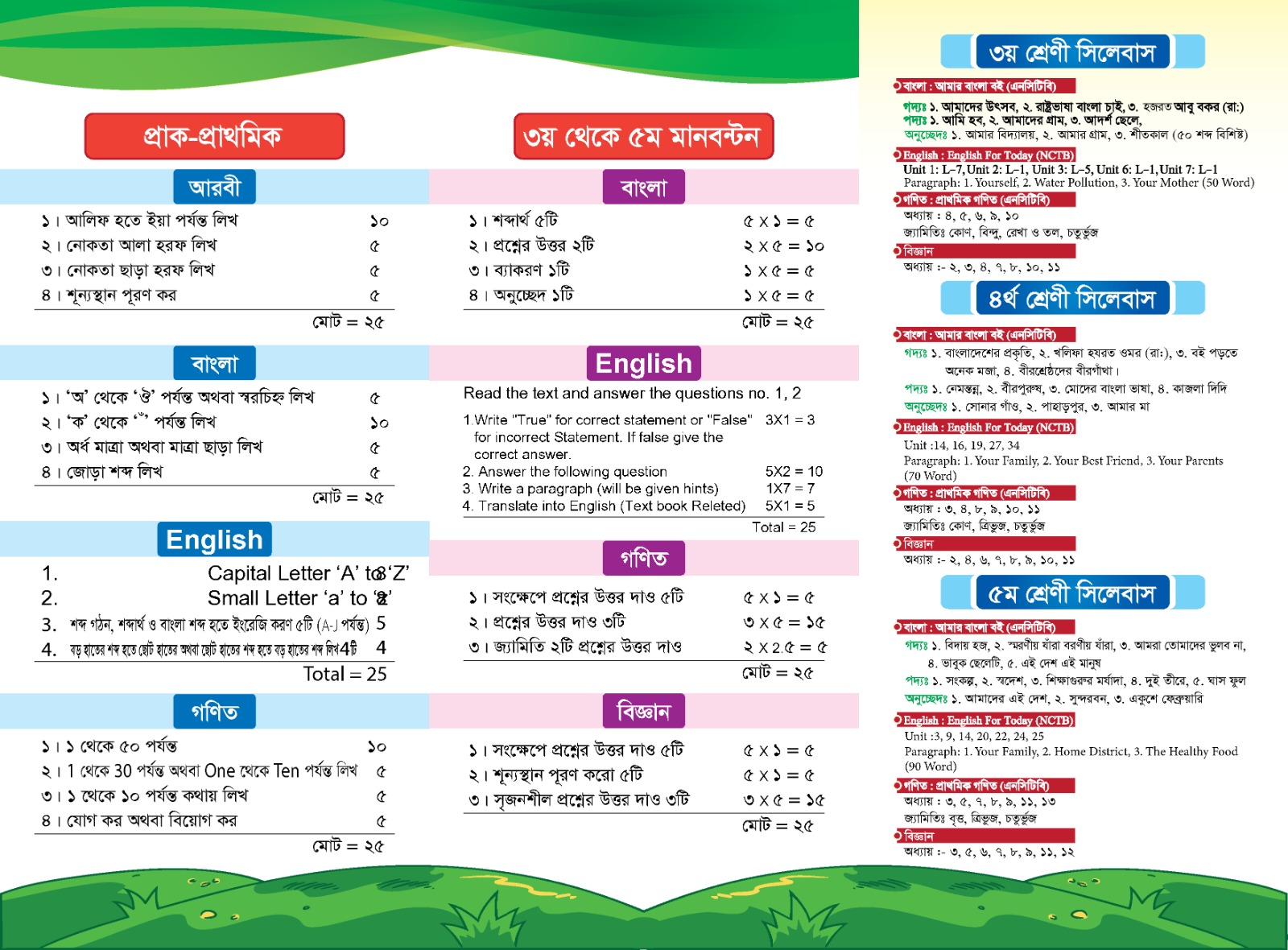 প্রাক-প্রাথমিক ও ৩য় থেকে ৫ম শ্রেণী পর্যন্ত সিলেবাস Show File |