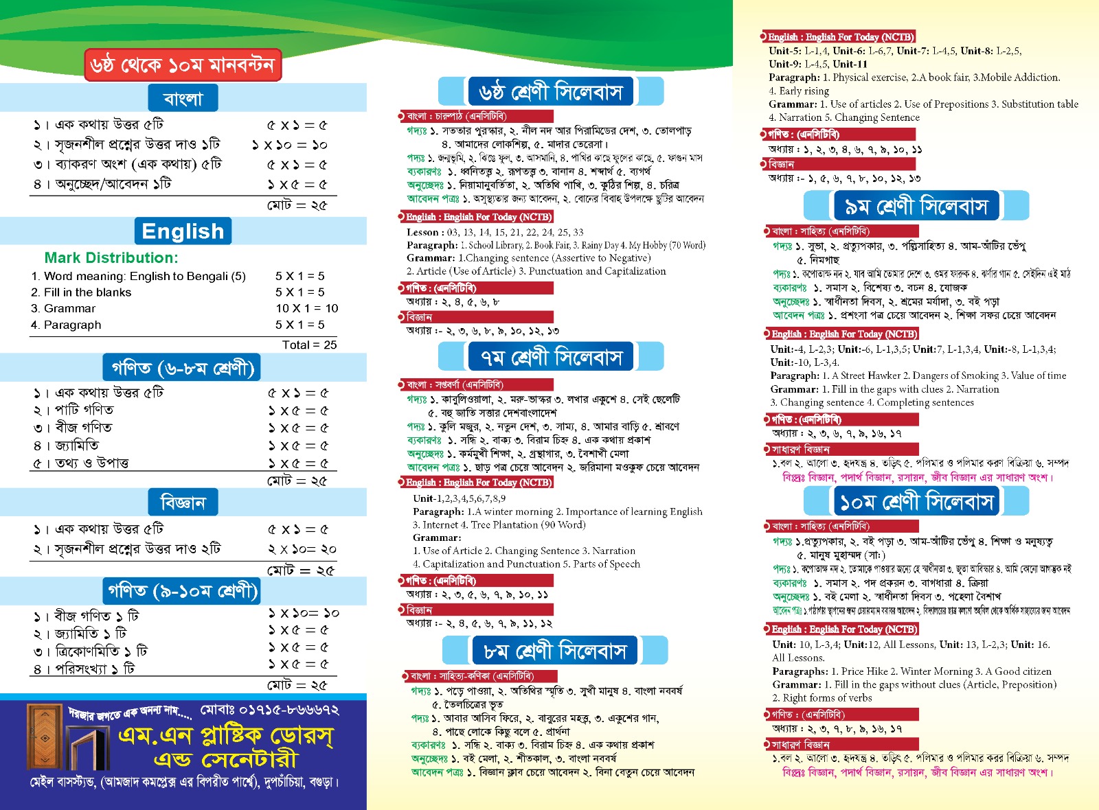৬ষ্ঠ হতে ১০ম শ্রেণী পর্যন্ত সিলেবাস Show File |